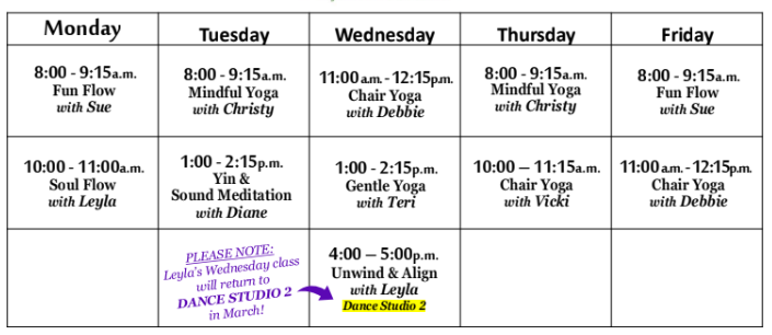 March Yoga Classes